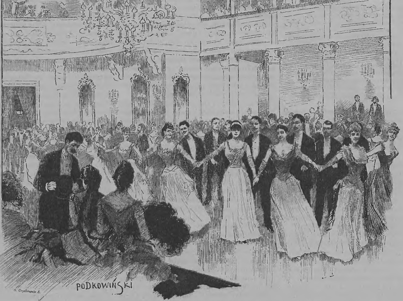 I panny nie wydawały balów, ale musiały czekać, ażeby — ktoś ze znajomych wydał bal, ażeby je zaprosił, ażeby rodzice pozwolili iść na zabawę i w końcu — ażeby je wybrał do tańca ktoś zaprezentowany drzemiącej mamie.