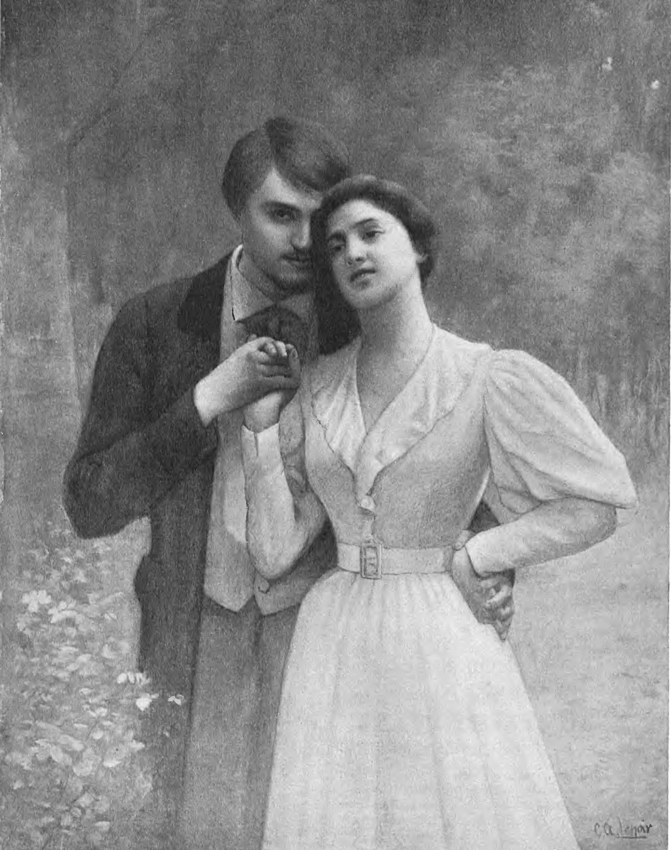Po zaręczynach panna daje narzeczonemu drobną pamiątkę: pierścionek lub medaljon zawierający jej włosy lub fotografję.